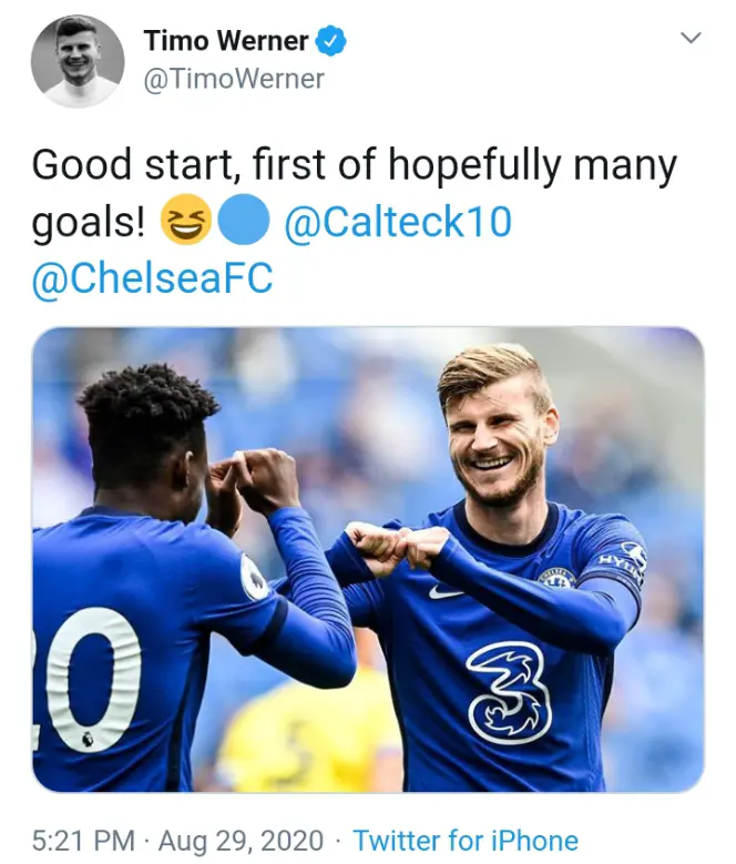 See What Timo Werner Posted On Twitter After Scoring His First Goal For Chelsea Daily Focus Nigeria